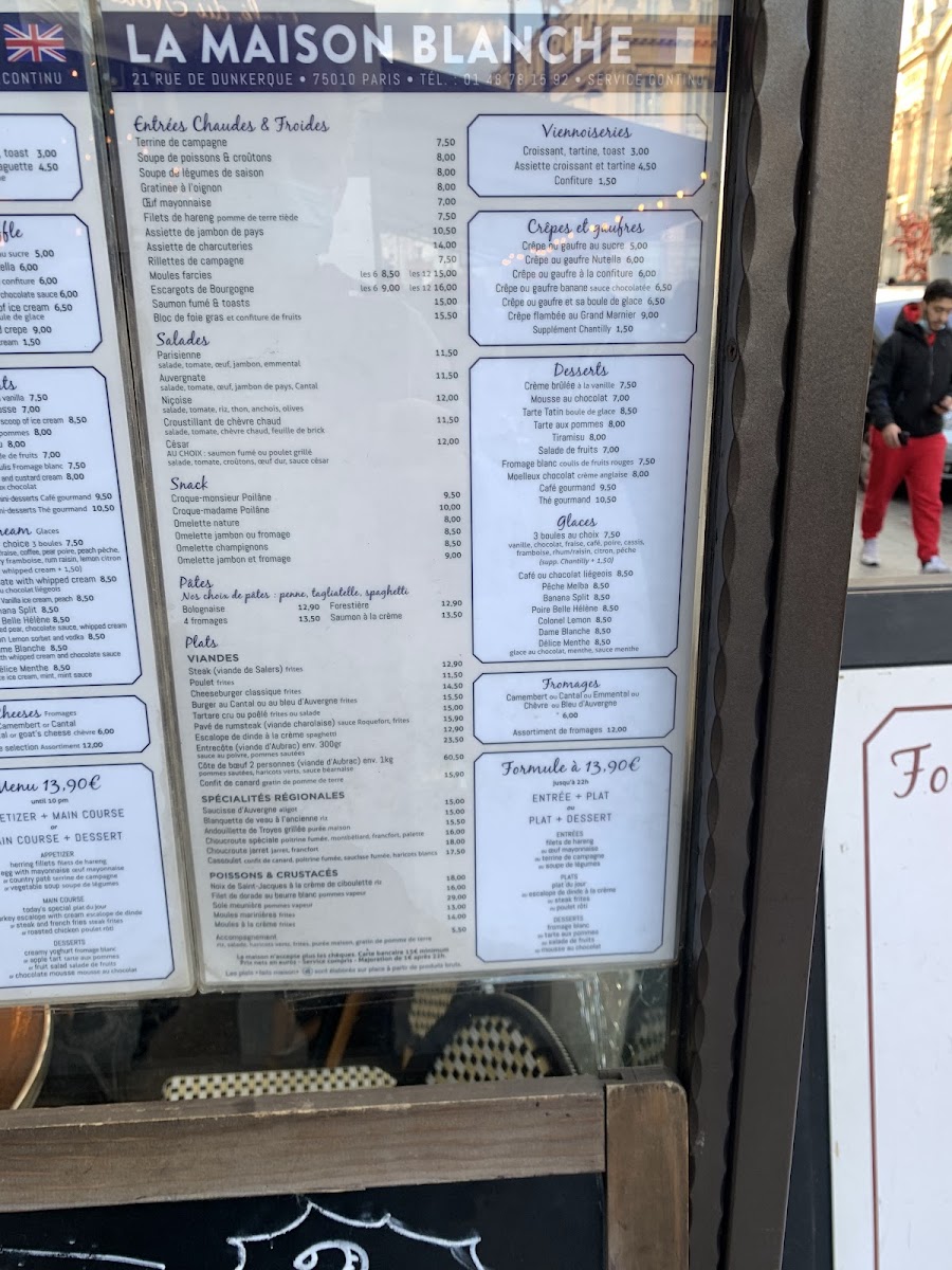 La Maison Blanche - 23-19 Rue de Dunkerque Menu